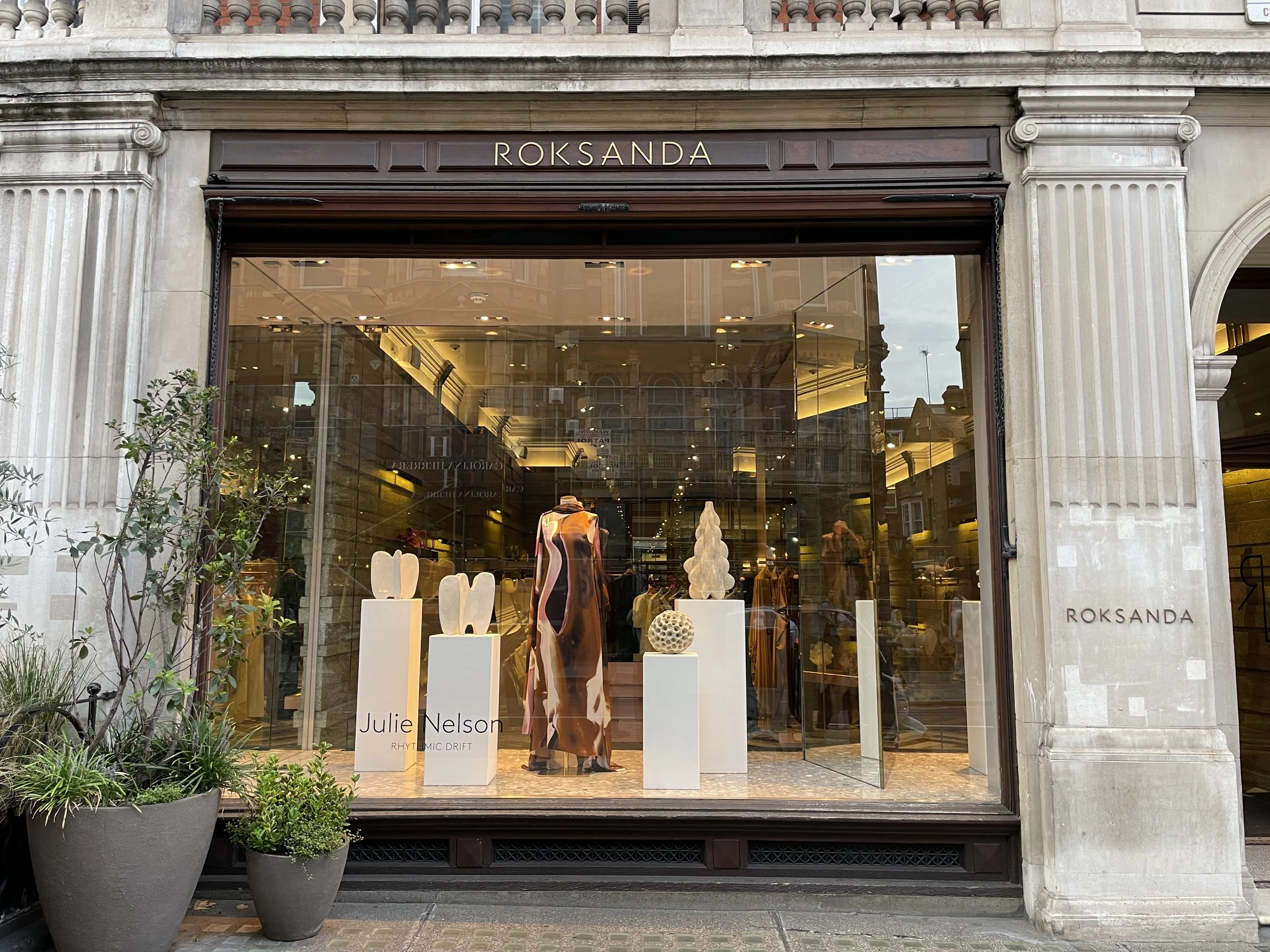 I was thrilled to be invited by fashion designer Roksanda to exhibit my ceramic pieces in her stunning Mayfair store, designed by Sir David Adjaye. From early September until October 2022 my sculptures will sit within the glamorous and elegant Mount Street space and window.